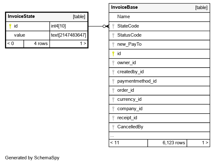 | InvoiceState_pkey | Primary key | Asc | id |