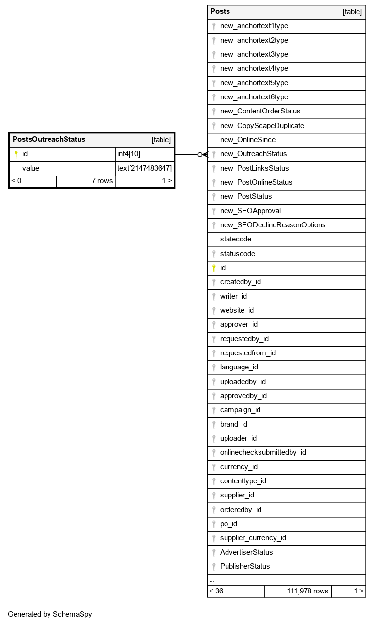 | PostsOutreachStatus_pkey | Primary key | Asc | id |