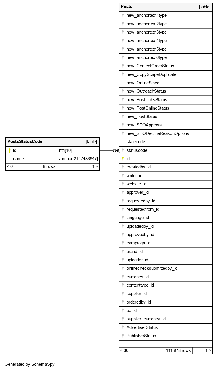 | PostsStatusCode_pkey | Primary key | Asc | id |