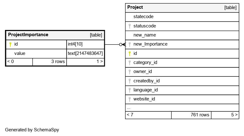 | ProjectImportance_pkey | Primary key | Asc | id |
