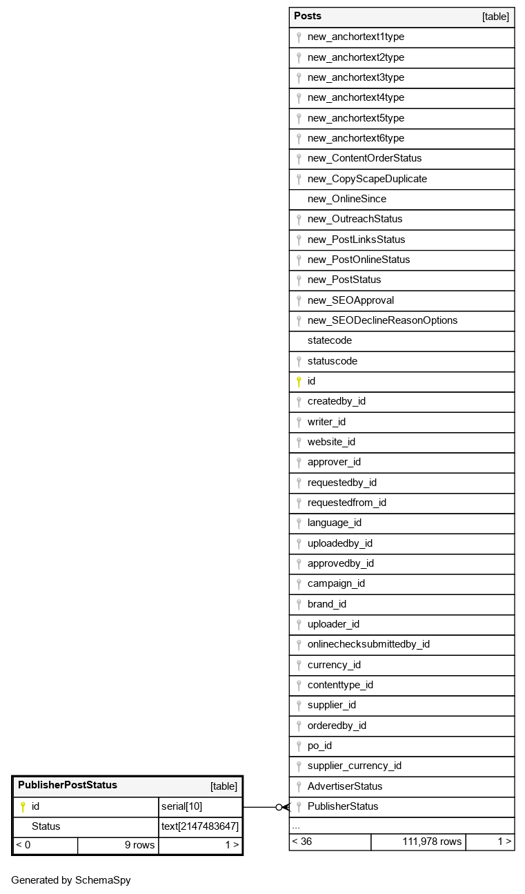 | PublisherPostStatus_pkey | Primary key | Asc | id |